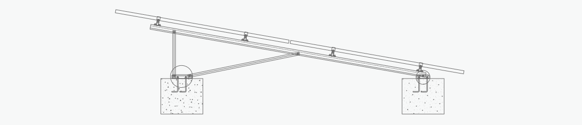 Система крепления солнечных батарей на бетонном основании разработана с учетом различных требований к проектам монтажа на земле. Солнечные модули могут располагаться в один или два ряда с альбомной или портретной ориентацией. Быстрый монтаж и стабильная конструкция обеспечиваются модульной запатентованной схемой конструкций.